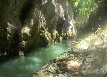 Le canyoning est une activité de pleine nature qui consiste à descendre un canyon en combinant marche, sauts, toboggans naturels et descentes en rappel, toujours encadré par un guide professionnel.