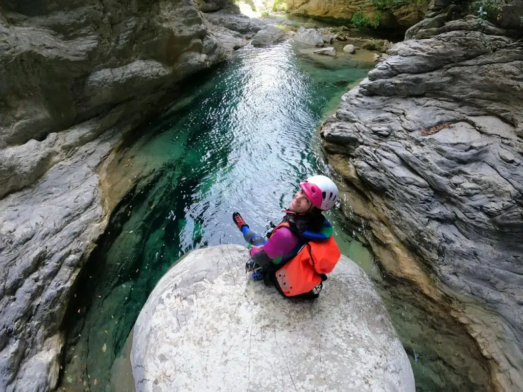 Le canyoning est une activité de pleine nature qui consiste à descendre un canyon en combinant marche, sauts, toboggans naturels et descentes en rappel, toujours encadré par un guide professionnel.